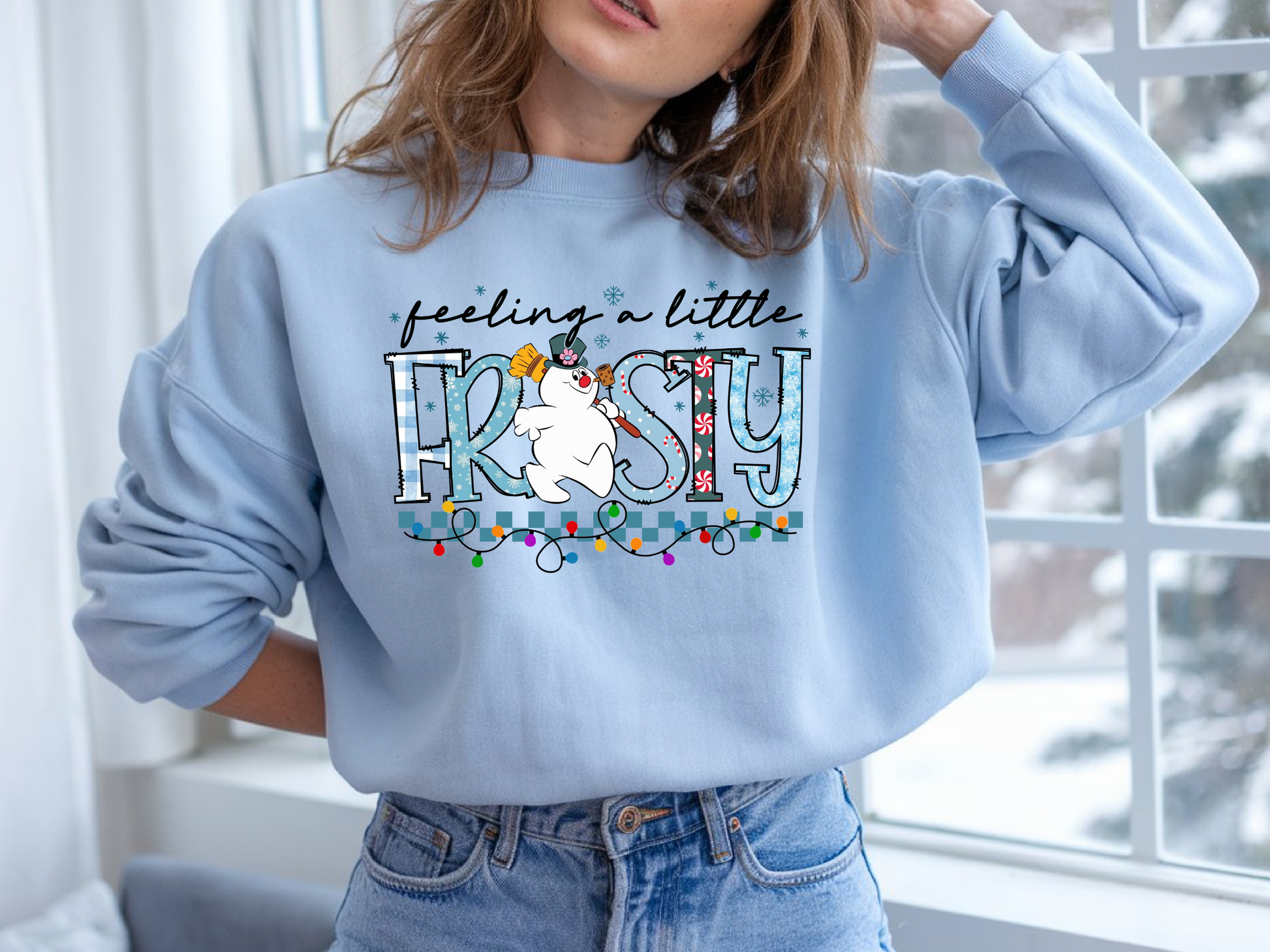 🎨 Design: “Feeling a little frosty” with a cheerful snowman, festive lights, and snowy lettering